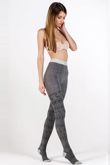 Фото товара 8634, теплые колготки серого цвета с орнаментом