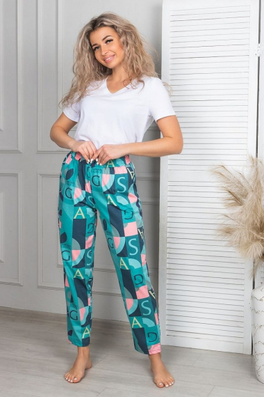 Фото товара 23190, хлопковые зеленые брюки с карманами